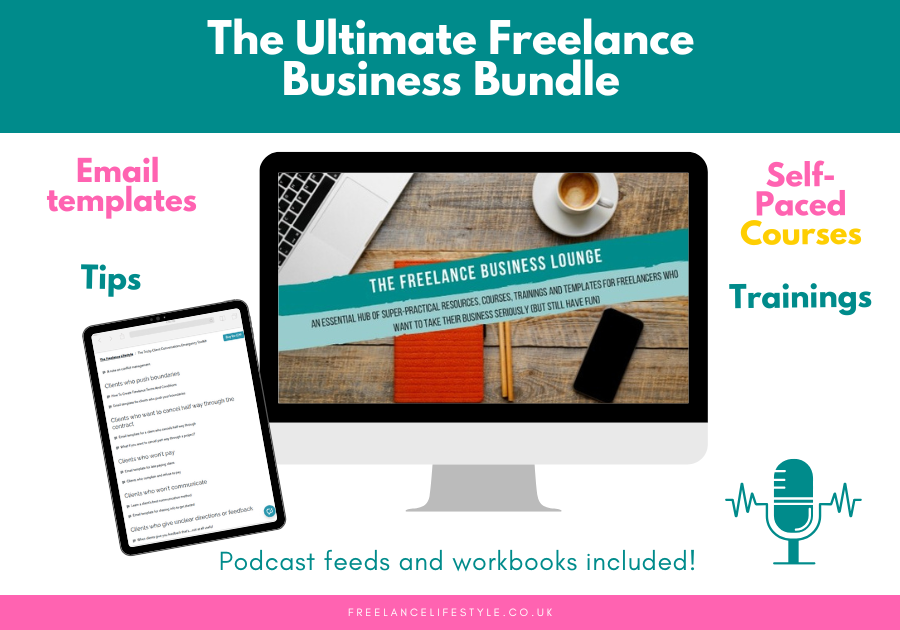 Usually, you can only access all of these resources as a member of the Freelance Business Lounge (which is currently full) but for those who want to delve into the treasure trove of resources in the Business Lounge, I’ve put together a bundle you can use at your own pace.